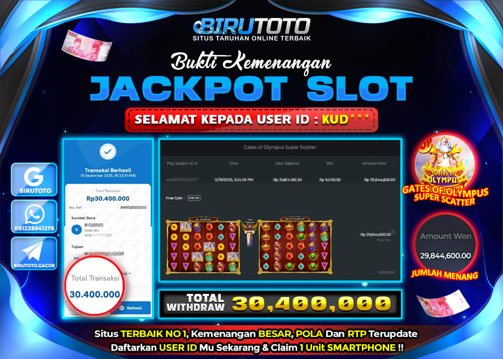 BIRUTOTO JACKPOT SLOT GATES OF OLYMPUS 1000 Rp.12.000.000 LUNAS