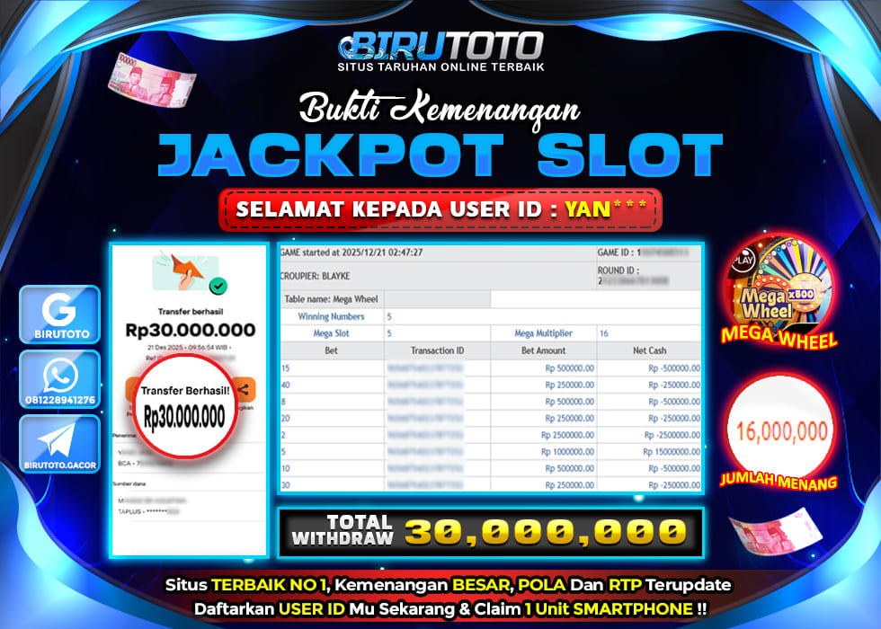 BIRUTOTO JACKPOT LIVE CASINO MEGA WHEEL Rp.30.000.000 LUNAS