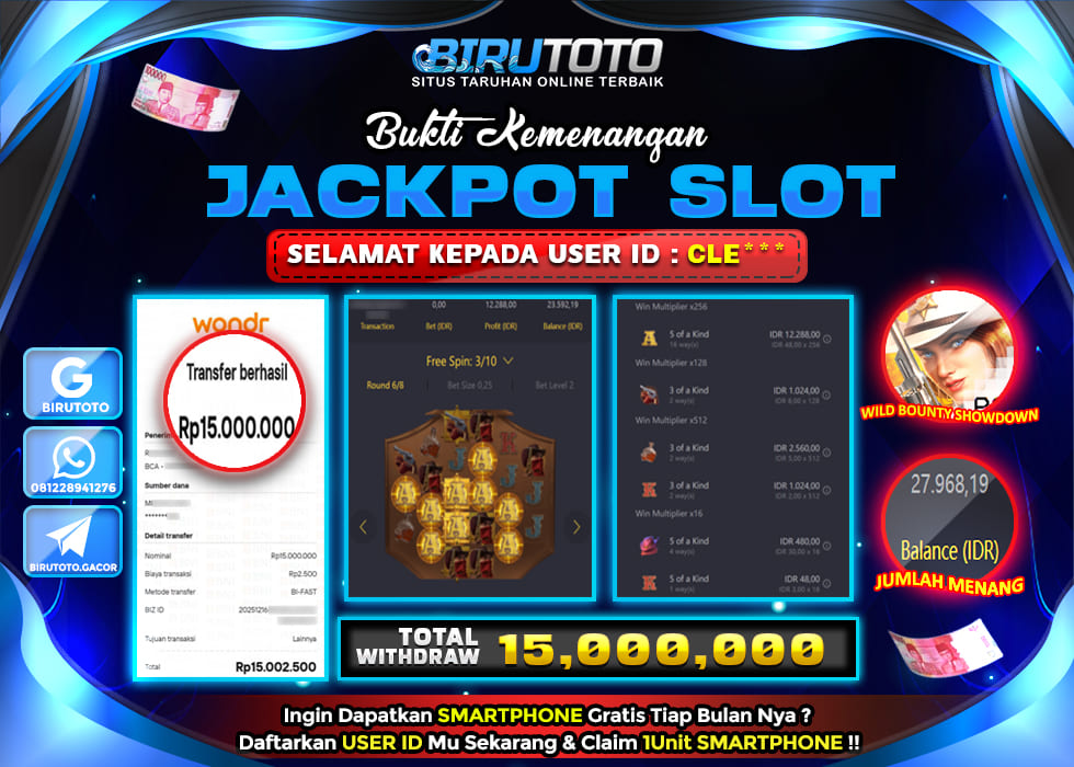 Selamat Kepada Member BIRUTOTO CL**** Telah Jackpot Di SLOT WILD BOUNTY SHOWDOWN