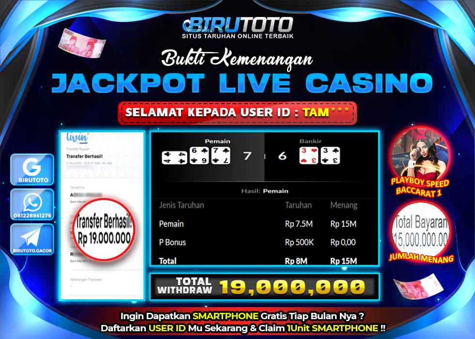BIRUTOTO JACKPOT LIVE CASINO PLAYBOY SPEED BACCARAT 1 Rp.19.000.000 LUNAS